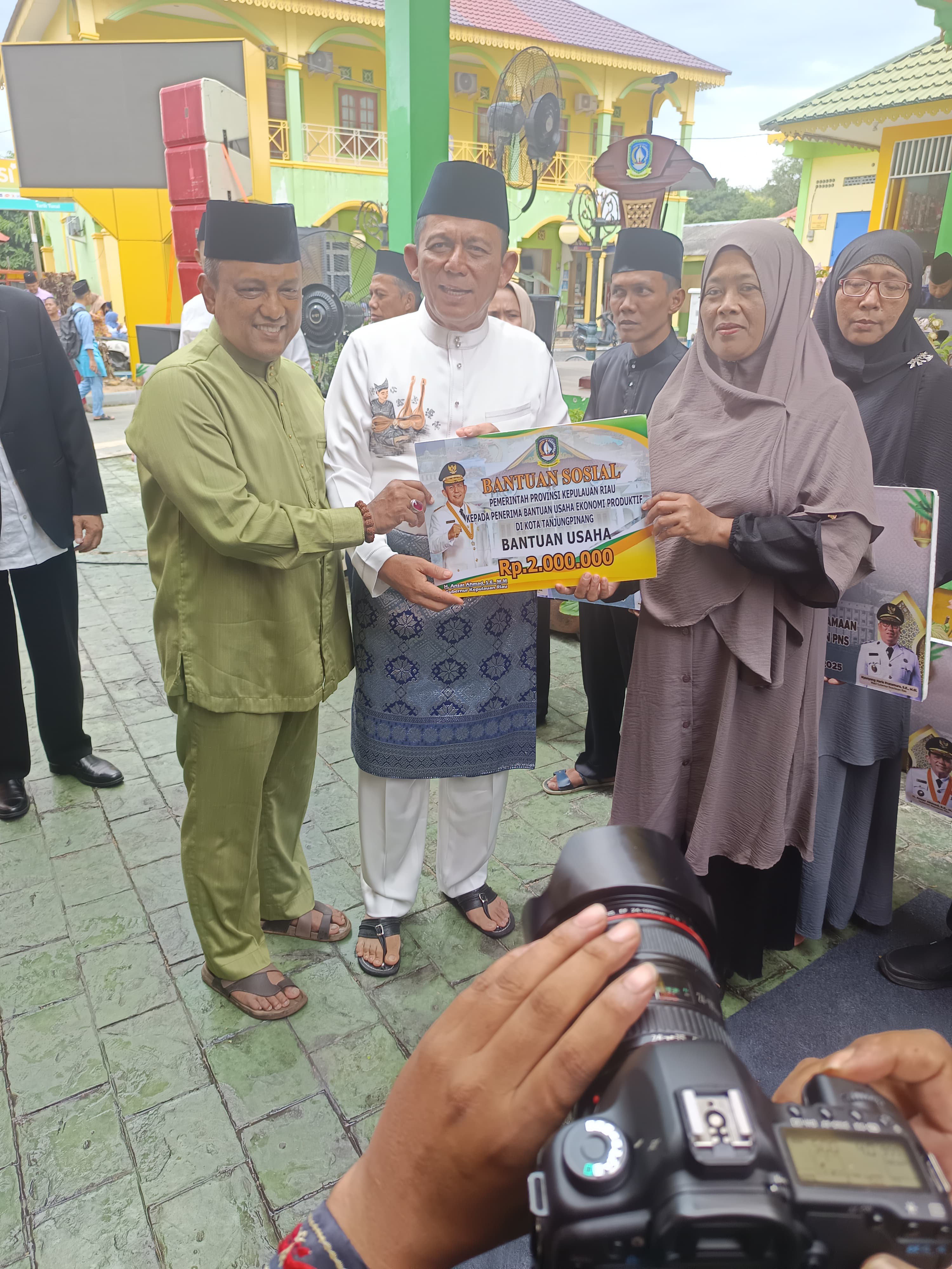 Gubernur Tanjung Jabung Barat H Ansar Ahmad menyerahkan bantuan sosial Usaha Ekonomi Produkif (UEP) kepada Masyarakat Kota Tanjung Pinang